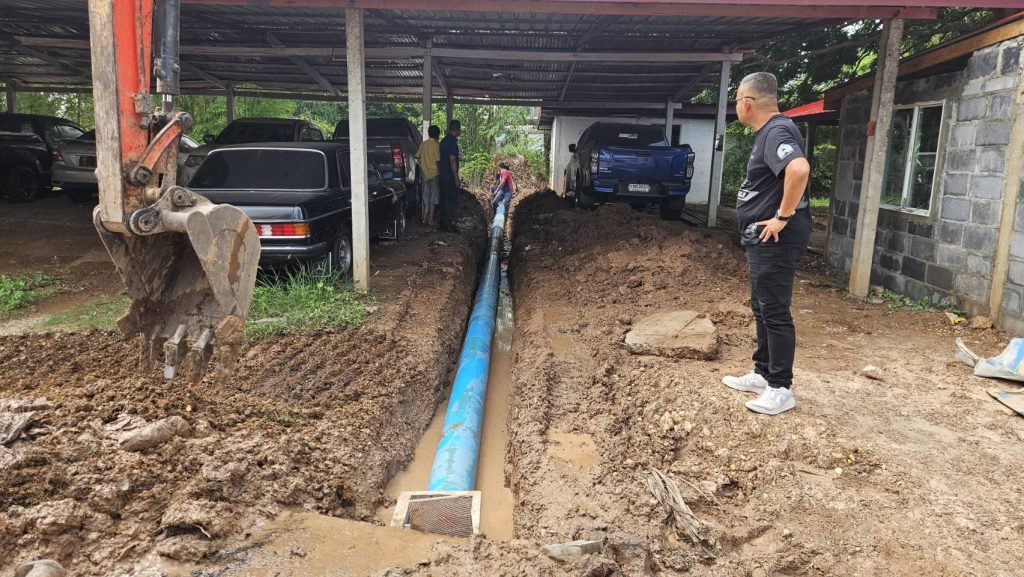 พร้อมข้าราชตำรวจในสังกัด ดำเนินกิจกรรม 5 ส.ปรับปรุงภูมิทัศน์พัฒนาสถานีบริเวณรอบอาคารที่ทำการ ปรับปรุงท่อระบายน้ำด้านหลังอาคารที่ทำการ ตามแนวทางการยกระดับการบริการประชาชน บริเวณรอบอาคารที่ทำการ ตามนโยบาย ผม.ตร. บริหารราชการสำนักงานตำรวจแห่งชาติประจำปีงบประมาณ 2568