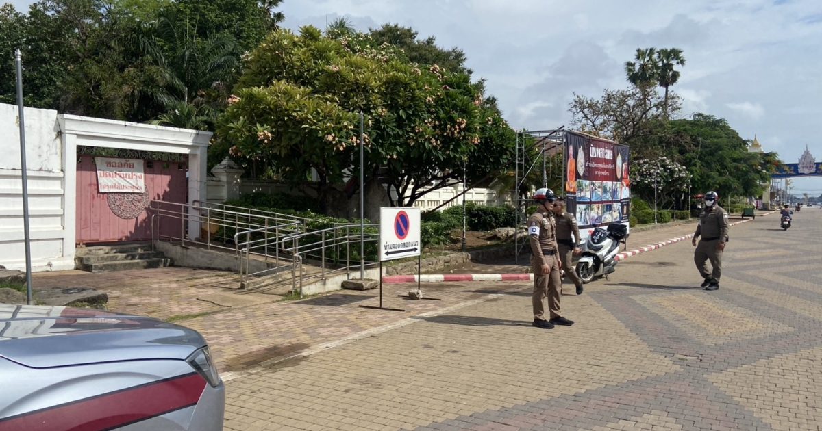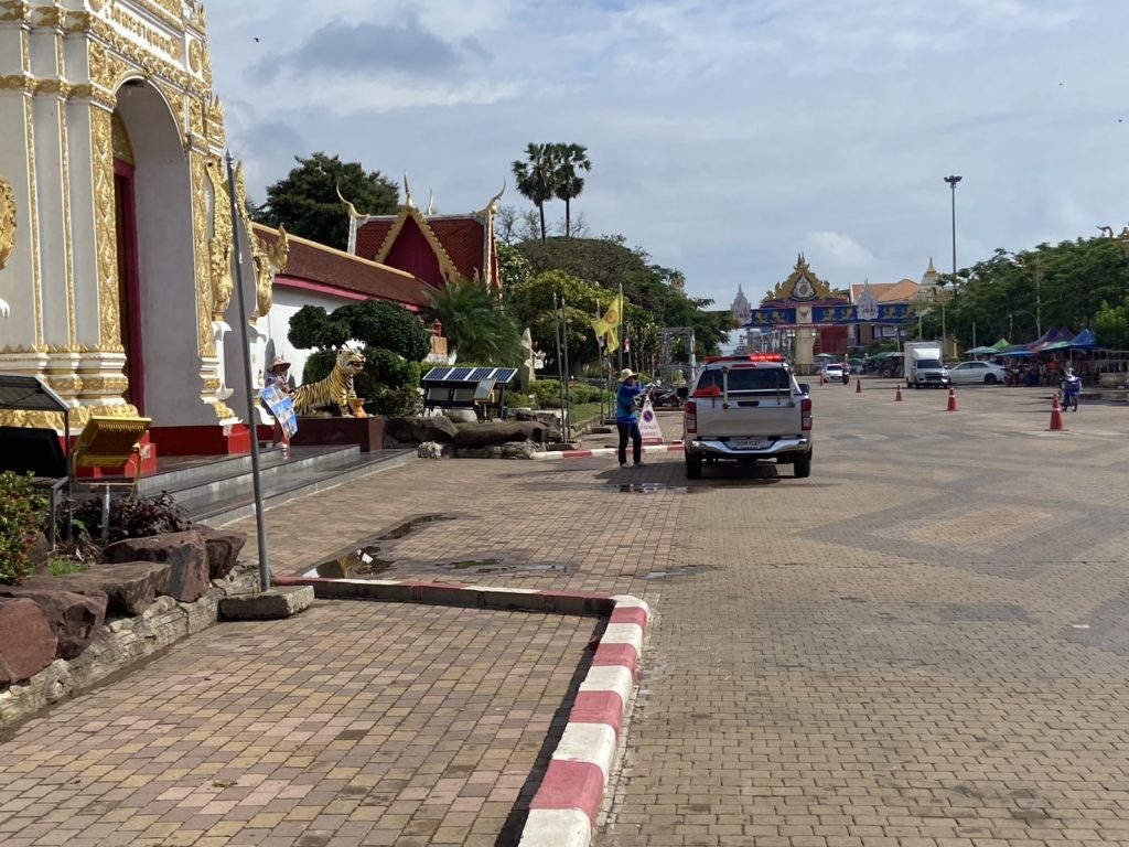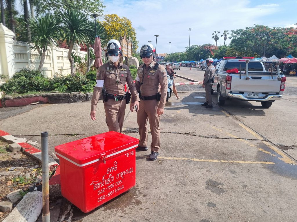 พ.ต.ท.ถนอมศักดิ์ ไชยบุรมย์ รอง ผกก.ป.ฯ พ.ต.ท.วิชัย วิทวงศ์ สวป.ฯ ชุดจราจร จัดระเบียบการจราจรบริเวณถนนหน้าวัดพระธาตุธาตุพนม เหตุการณ์ทั่วไปปกติ