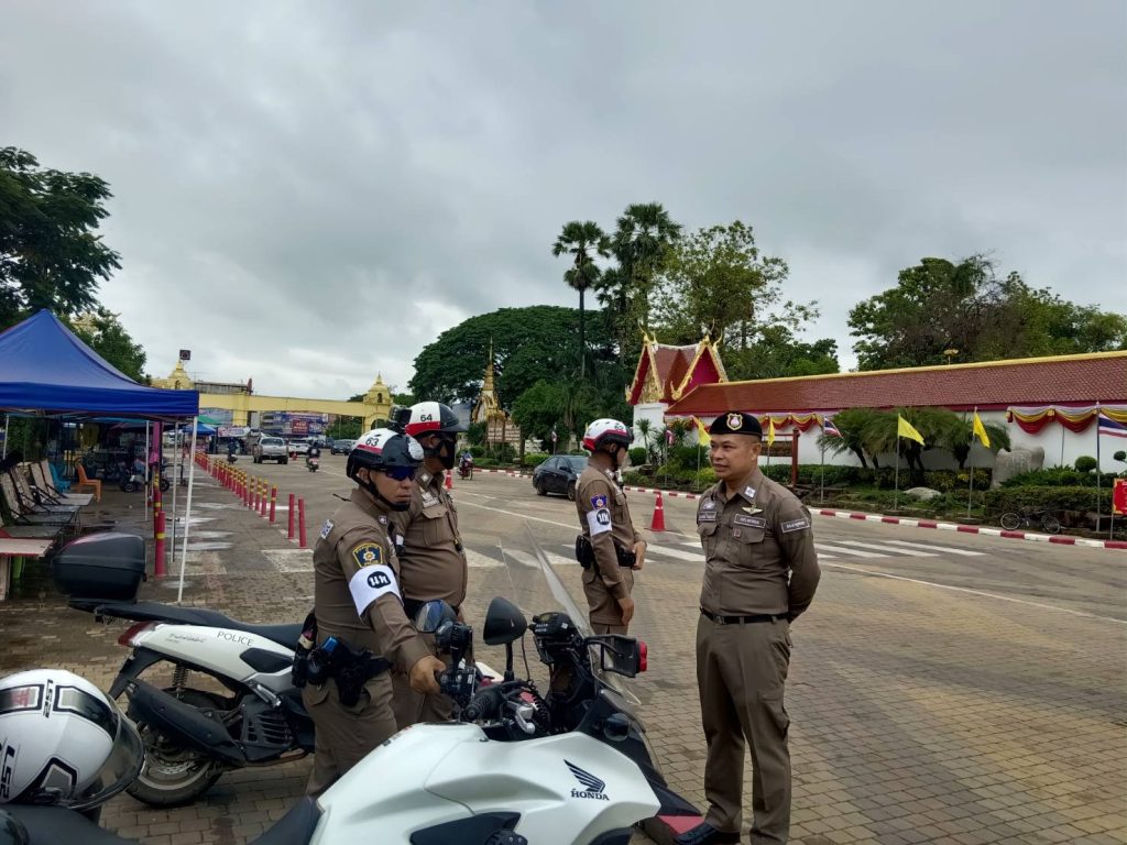 พ.ต.ท.ถนอมศักดิ์ ไชยบุรมย์ รอง ผกก.ป.ฯ,พ.ต.ท.สมานศักดิ์ ศรีประเสริฐ สวป.ฯพร้อมชุดจราจร อำนวยความสะดวกการจราจรเเละจัดระเบียบร้านค้า ดูแลความเรียบร้อย ให้กับนักท่องเที่ยว บริเวณหน้าวัดพระธาตุพนม และภายในบริเวณวัดพระธาตุพนม วรมหาวิหาร