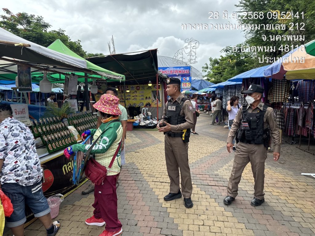 ร.ต.อ.ชื่น พันธ์ศิลา รอง สวป.สภ.ธาตุพนม ปฏิบัติหน้าที่ร้อยเวร 2-0 พร้อมด้วยสายตรวจรถยนต์ รถจักรยายนต์