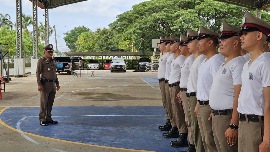 พ.ต.อ.แสวง คนคล่อง ผกก.สภ.ธาตุพนม ตรวจเยี่ยมกำลังพลชุดฝึกและตรวจเครื่องแต่งกาย ทรงผม หนวด เคราเล็บ ก่อนเข้ารับการฝึก และทำการฝึกกำลังพลเพื่อรอรับการตรวจ ประกวดการฝึกประจำปี 2568 ณ โดมอเนกประสงค์ วิทยาลัยธาตุพนม