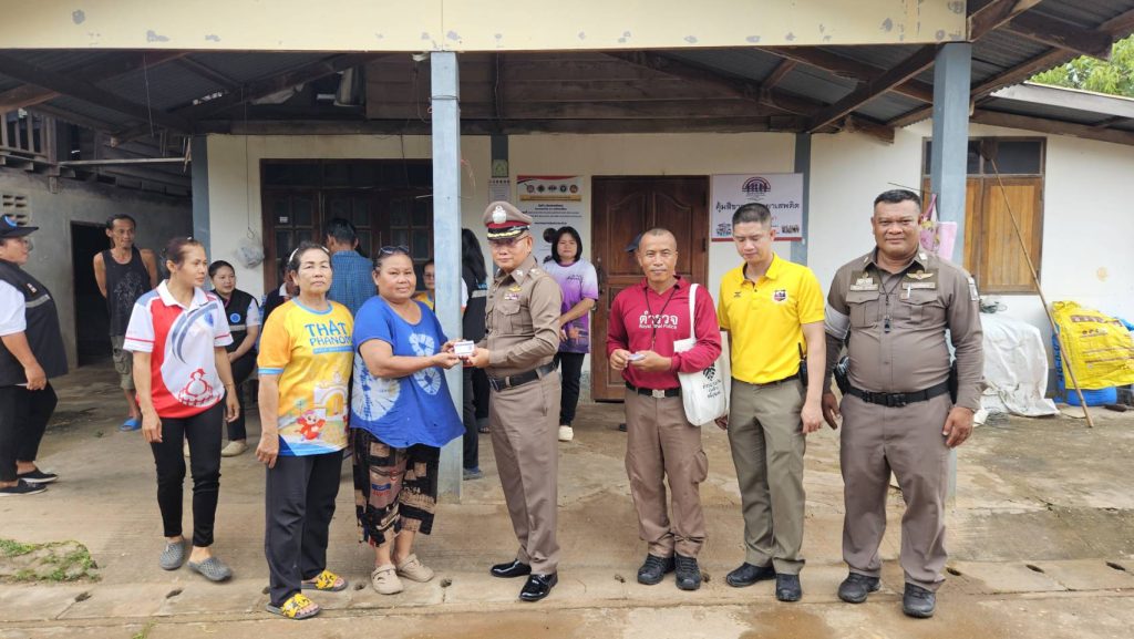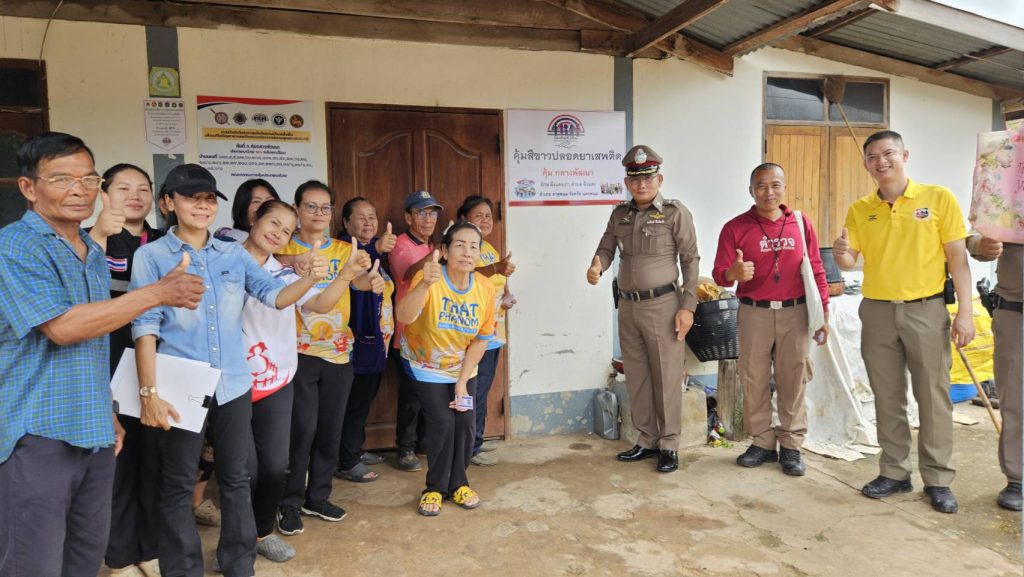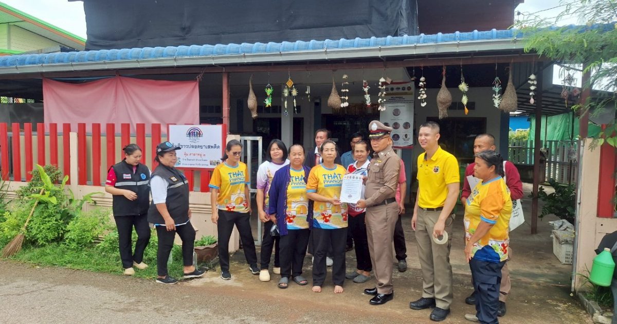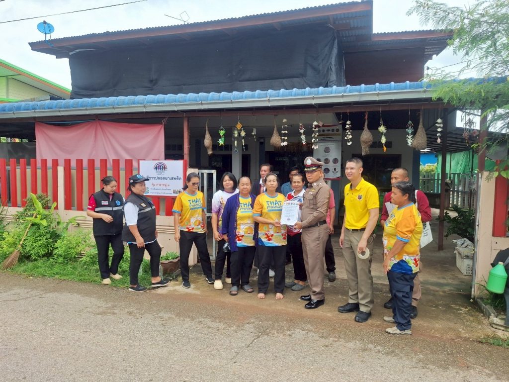 พ.ต.ต.อัมพร เสนาะเสียง สวป.(ชส.)สภ.ธาตุพนมพร้อมชุดปฏิบัติการชุมชนยั่งยืนตบลฝั่งแดง ตรวจเยี่ยมหัวหน้าคุ้มกรรมการคุ้มและได้มอบบัตรพลเรือนสีขาวและป้ายคุ้มสีขาวปลอดยาเสพติด ให้แก่ชุมชนต่อไป
