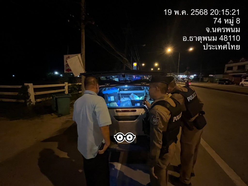 พ.ต.ท.ถนอมศักดิ์ ไชยบุรมย์ รอง.ผกก.ป.สภ.ธาตุพนม สั่งการให้พ.ต.ท. วิชัย วิทวงค์ สวป.สภ.ธาตุพนม มอบหมายให้ ร.ต.อ. ปรีชา บัวสิงห์ รอง สว.สส.สภ.ธาตุพนม พร้อมสายตรวจรถยนต์ จักรยานยนต์ ตั้งจุดตรวจจุดสกัดเพื่อป้องกันอาชญากรรมและสิ่งผิดกฎหมายและสกัดกั้นบุคคลสัญชาติลาวและบุคคลต่างด้าวที่เข้ามาโดยผิดกฎหมาย บริเวณ ถนนบายพาส จุดตรวจหน้าตู้ยามสายตรวจบายพาส ตำบลธาตุพนม อำเภอธาตุพนม จังหวัดนครพนม