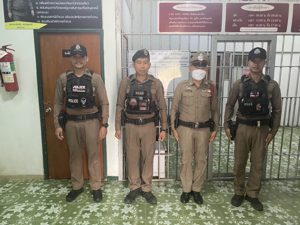 -พนักงานวิทยุ ร.ต.ท.สมศักดิ์ หล้ากํ้า แต่งเครื่องแบบ ว.4 เรียบร้อย และได้ตรวจห้องควบคุม สะอาดมั่นคงแข็งแรง พบ ร.ต.ต.เมืองมน ตะวังทัน
