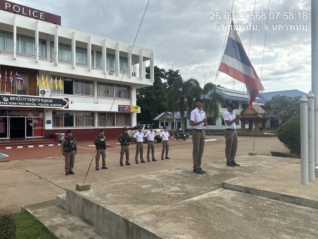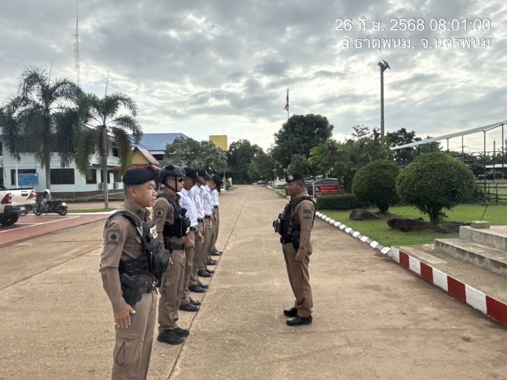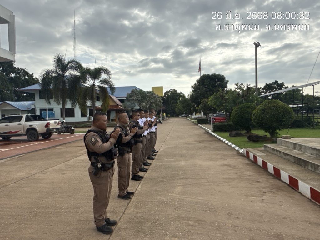 พ.ต.ท.วิชัย วิทวงศ์,สวป. สภ.ธาตุพนม ได้มอบหมายให้ ร.ต.อ.อัมรินทร์ ประเมินชัย รอง สว.ป.ฯ ปฏิบัติหน้าที่ร้อยเวร 2-0 ได้เรียกแถวสายตรวจรถยนต์, จยย. มาเพื่อร่วมกันเคารพธงชาติ, สวดมนต์ไหว้พระ, กล่าวบทปลงใจ, คำปฏิญานตน, อุดมคติตำรวจ, วิสัยทัศน์ และ พร้อมฟังชี้แจงข้อราชการแก่สายตรวจก่อนออกปฏิบัติหน้าที่