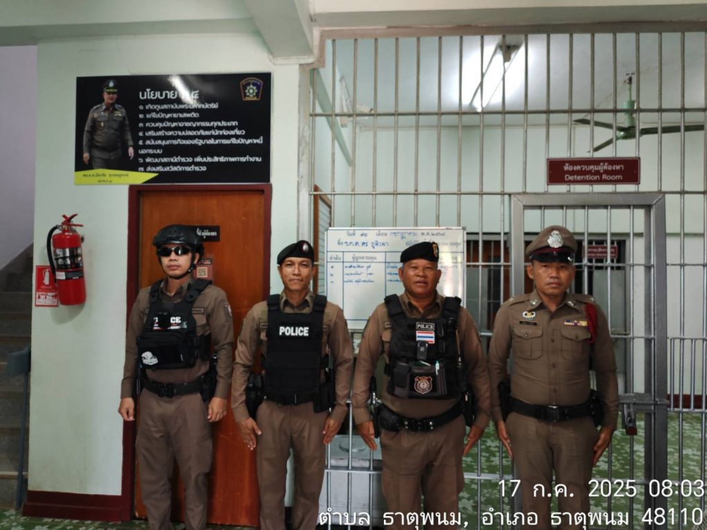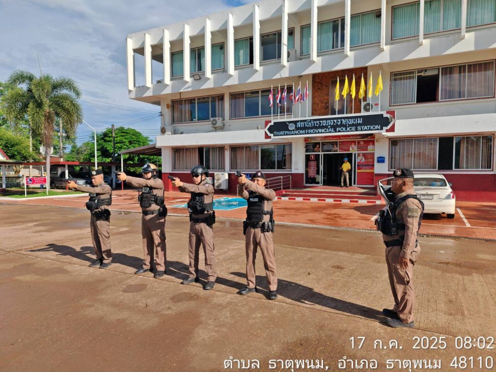 พ.ต.อ.แสวง คนคล่อง ผกก.สภ.ธาตุพนม,พ.ต.ท.ถนอมศักดิ์ ไชยบุรมย์ รอง ผกก.ป.สภ.ธาตุพนม พ.ต.ท.วิชัย วิทวงศ์ สวป. สภ.ธาตุพนม ได้มอบหมายให้ ร.ต.อ.อัมรินทร์ ประเมินชัย รอง สว.ป.ฯ ปฏิบัติหน้าที่ร้อยเวร 2-0 ได้เรียกแถวสายตรวจรถยนต์, จยย. มาเพื่อร่วมกันเคารพธงชาติ,สวดมนต์ไหว้ พระ, กล่าวบทปลงใจ, คำปฏิญานตน, อุดมคติตำรวจ, วิสัยทัศน์ และ พร้อมฟังชี้แจงข้อราชการแก่สายตรวจก่อนออกปฏิบัติหน้าที่