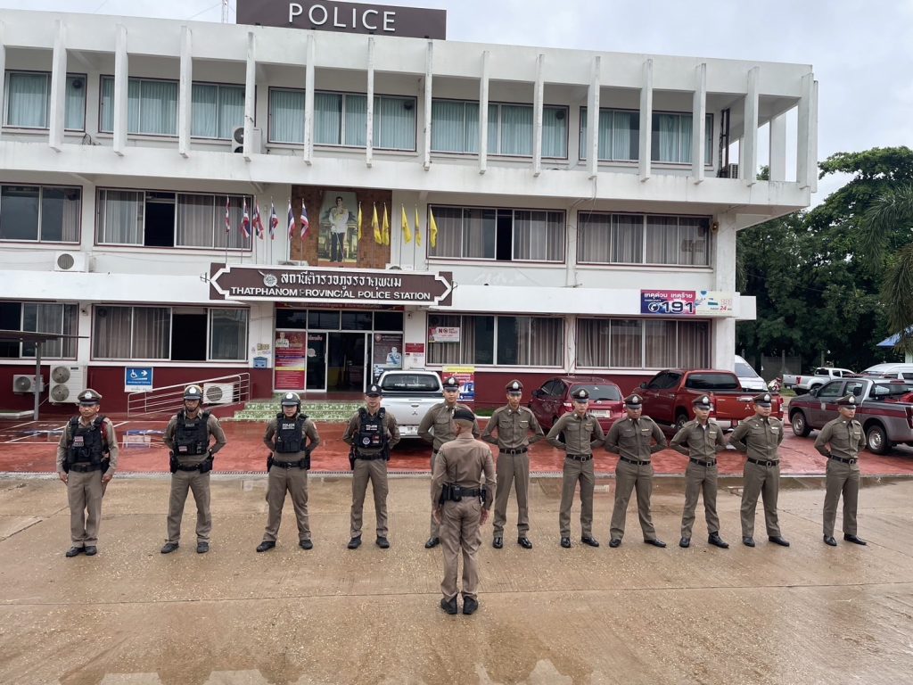 พ.ต.อ.ถวิล คำเกษ ผกก.สภ.ธาตุพนม ได้มอบหมายให้ พ.ต.ท.ถนอมศักดิ์ ไชยบุรมย์ รอง ผกก.ป.ฯ พ.ต.ท.สมานศักดิ์ ศรีประเสริฐ สวป.ฯ พร้อมด้วย ร.ต.อ.ชื่น พันธุ์ศิลา รอง สว.ป.ฯ (ผลัดใหม่) ร.ต.อ.อัมรินทร์ ประเมินชัยรอง สวป.ฯ (ผลัดเก่า) ได้เรียกแถวสายตรวจรถยนต์, จยย. มาเพื่อร่วมกันเคารพธงชาติ, สวดมนต์ไหว้พระ,ปล่กล่าวบทปลงใจ, คำปฏิญานตน, อุดมคติตำรวจ, วิสัยทัศน์ และ พร้อมฟังชี้แจงข้อราชการแก่สายตรวจก่อนออก ว.4 และได้กำชับสายตรวจทุกนาย