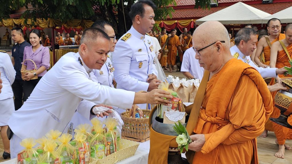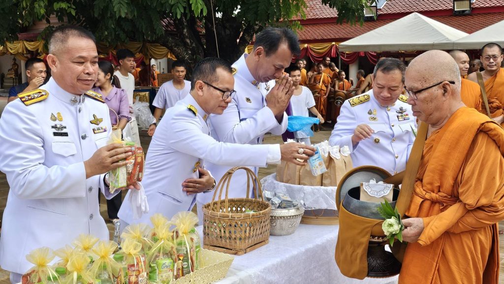 พิธีสวดเจริญพระพุทธมนต์และทำบุญตักบาตรถวายพระราชกุศล เวลา 07.00 น