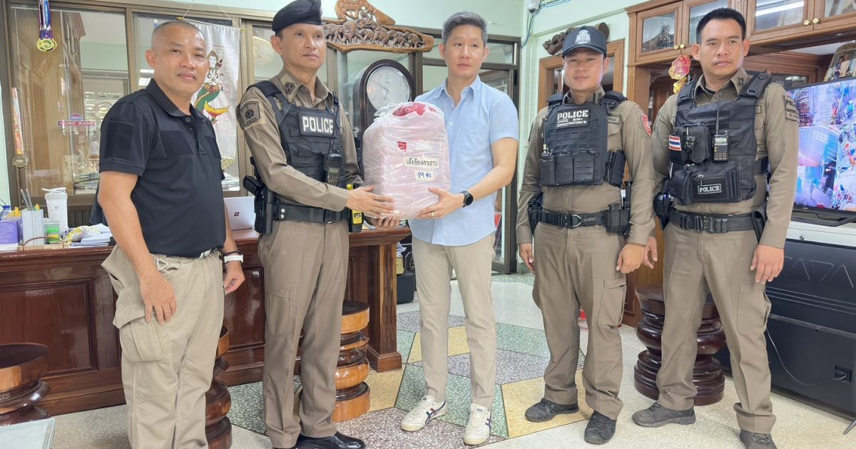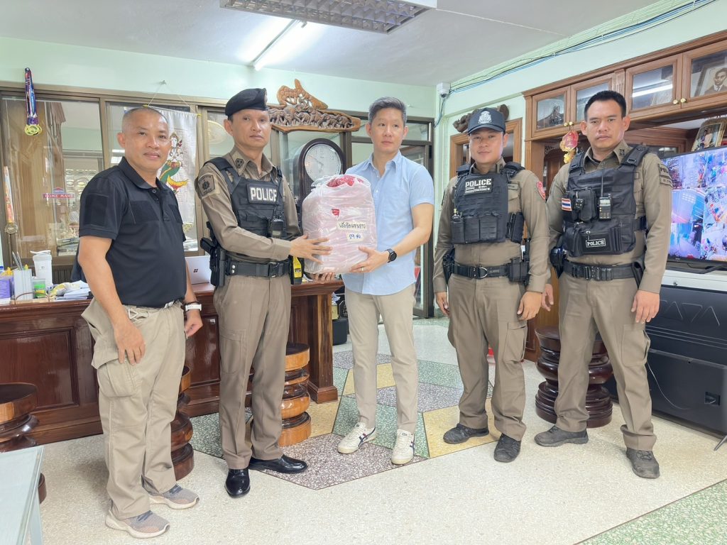 ร.ต.อ.ชื่น พันธ์ศิลา รอง สวป.สภ.ธาตุพนม พร้อมชุดชุมชนและมวลชนสัมพันธ์ ได้รับมอบเสื้อสันบสนุนการปฏิบัติงาน ขุมชนยั่งยืน จากนายชยุต จุรีมาศ ประธาน กกตร.สภ.ธาตุพนม