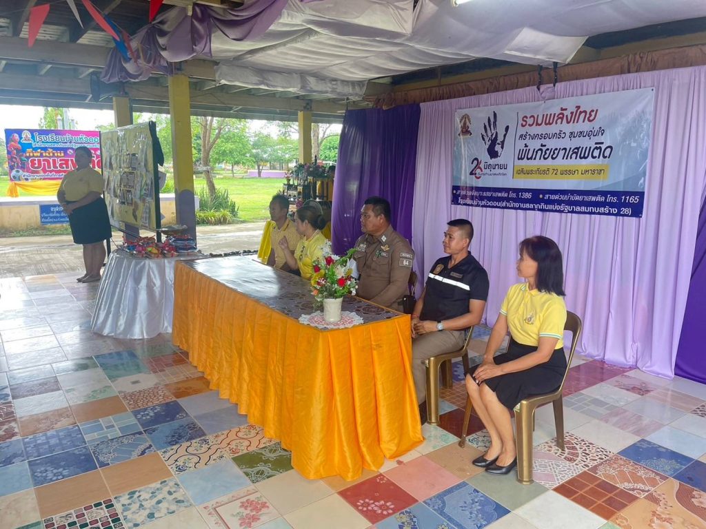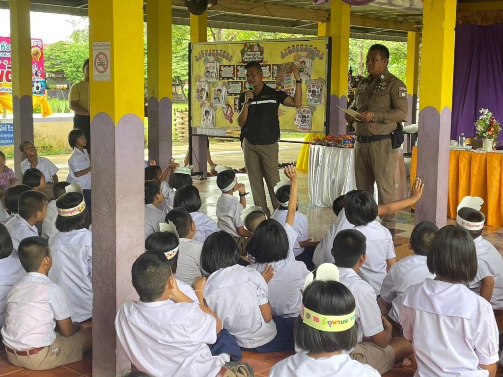 ได้มอบหมายให้ ร.ต.ต.ธีระพงษ์ ประขุนิงค์ รอง สว.(จร.)ฯ. ด.ต.กมล คำป้อง ผบ.หมู่(ป.)ฯ และนักเรียนนายสิบตำรวจร่วมกิจกรรมเป็นวิทยากรให้ความรู้รณรงค์ต่อต้านยาเสพติด