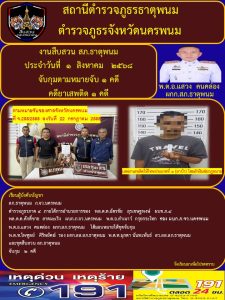 สว.สส.สภ.ธาตุพนม พร้อมชุดสืบสวน สภ.ธาตุพนม จับกุมตามหมายจับ 1 คดี และคดียาเสพติด 1 คดี