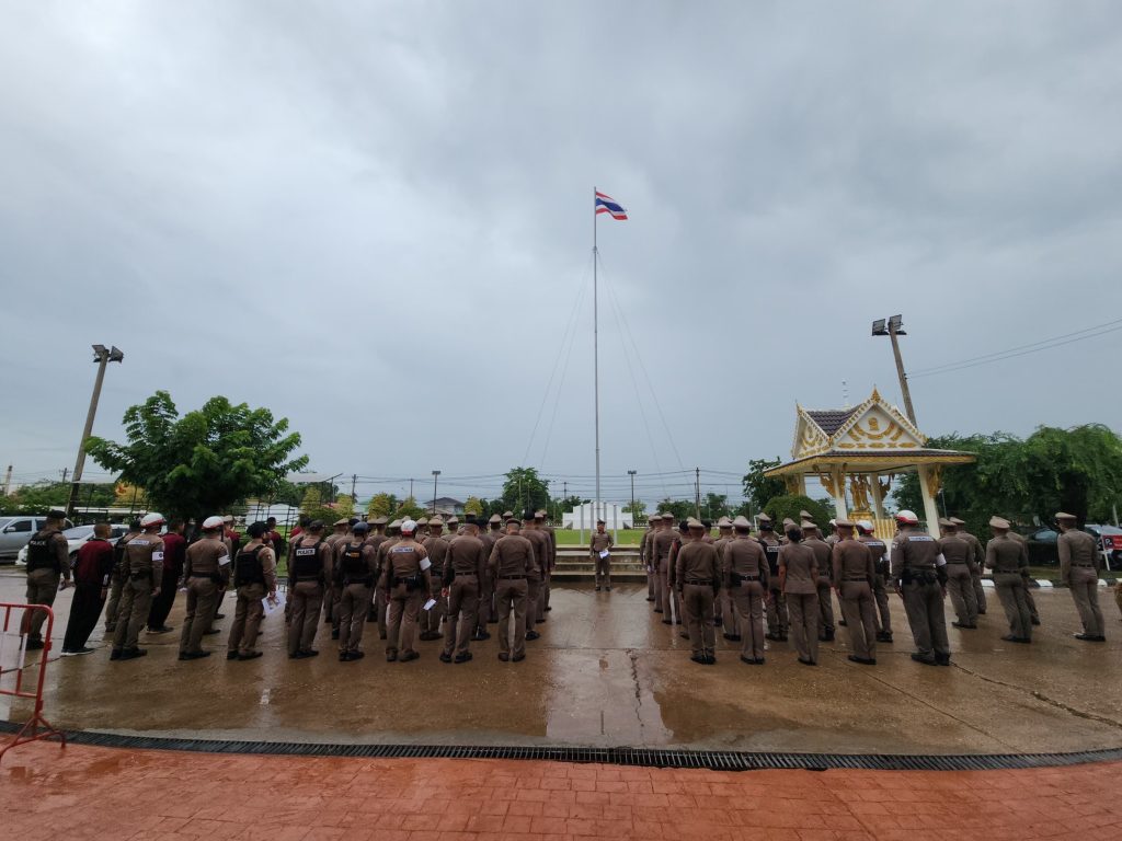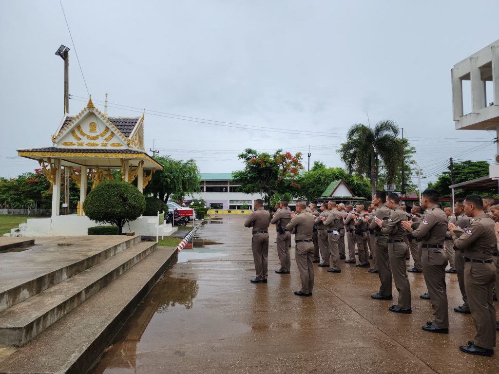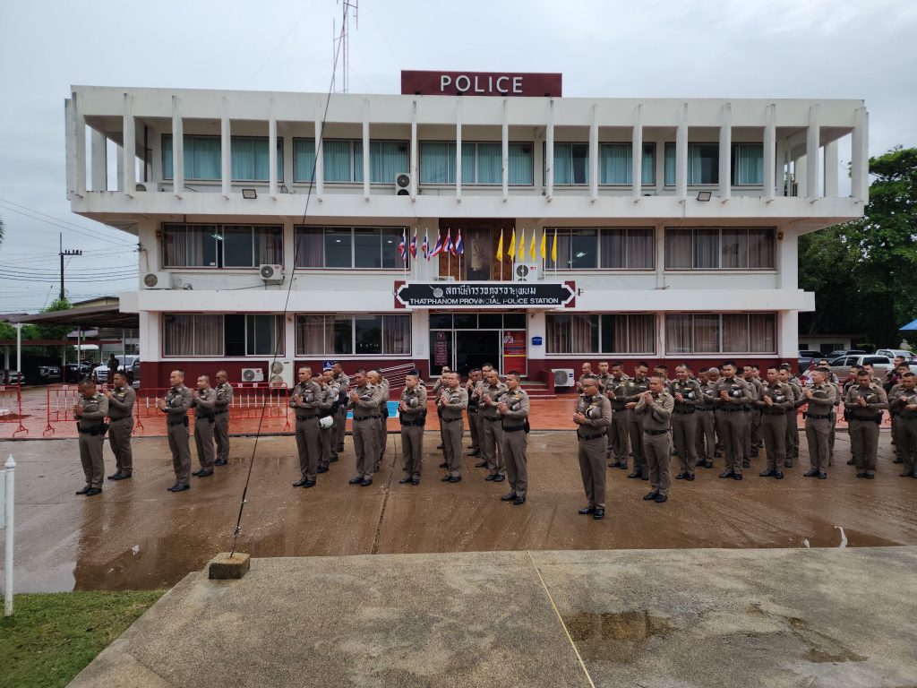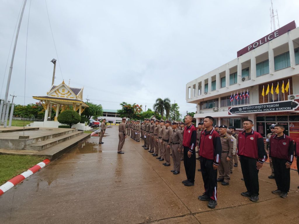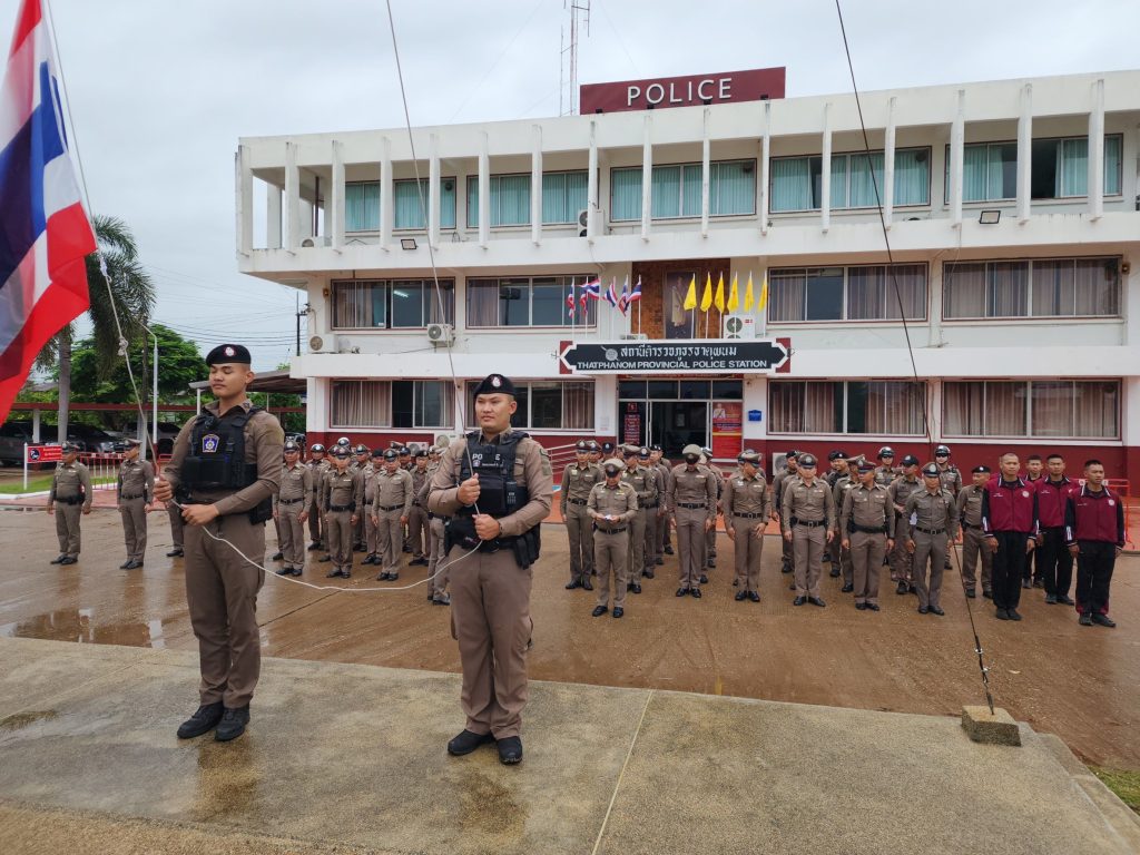พ.ต.ท.ไพฑูลย์ ศิริพยัคฆ์ ,รอง ผกก.สส.สภ.ธาตุพนม ,พ.ต.ต.อัมพร เสนาะเสียง สวป.(ชส)สภธาตุพนม พร้อมด้วยข้าราชการตำรวจ สภ.ธาตุพนม มาเพื่อร่วมกันเคารพธงชาติ, สวดมนต์ไหว้พระ, กล่าวบทปลงใจ, คำปฏิญานตน, อุดมคติตำรวจ, วิสัยทัศน์ และพร้อมฟังชี้แจงข้อราชการแก่สายตรวจก่อนออกปฏิบัติหน้าที่และได้กำชับข้าราชการตำรวจทุกนาย