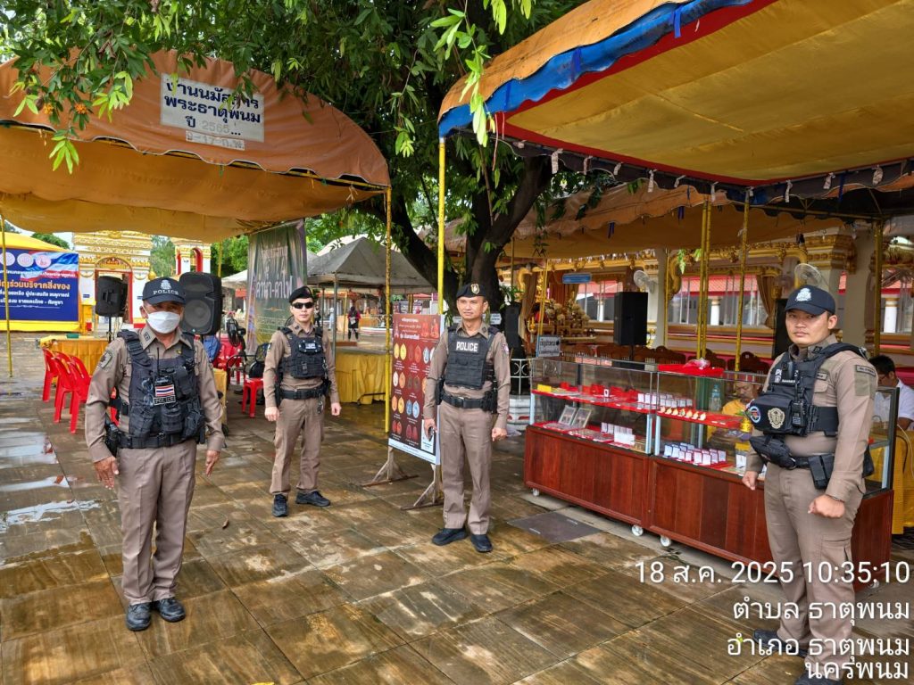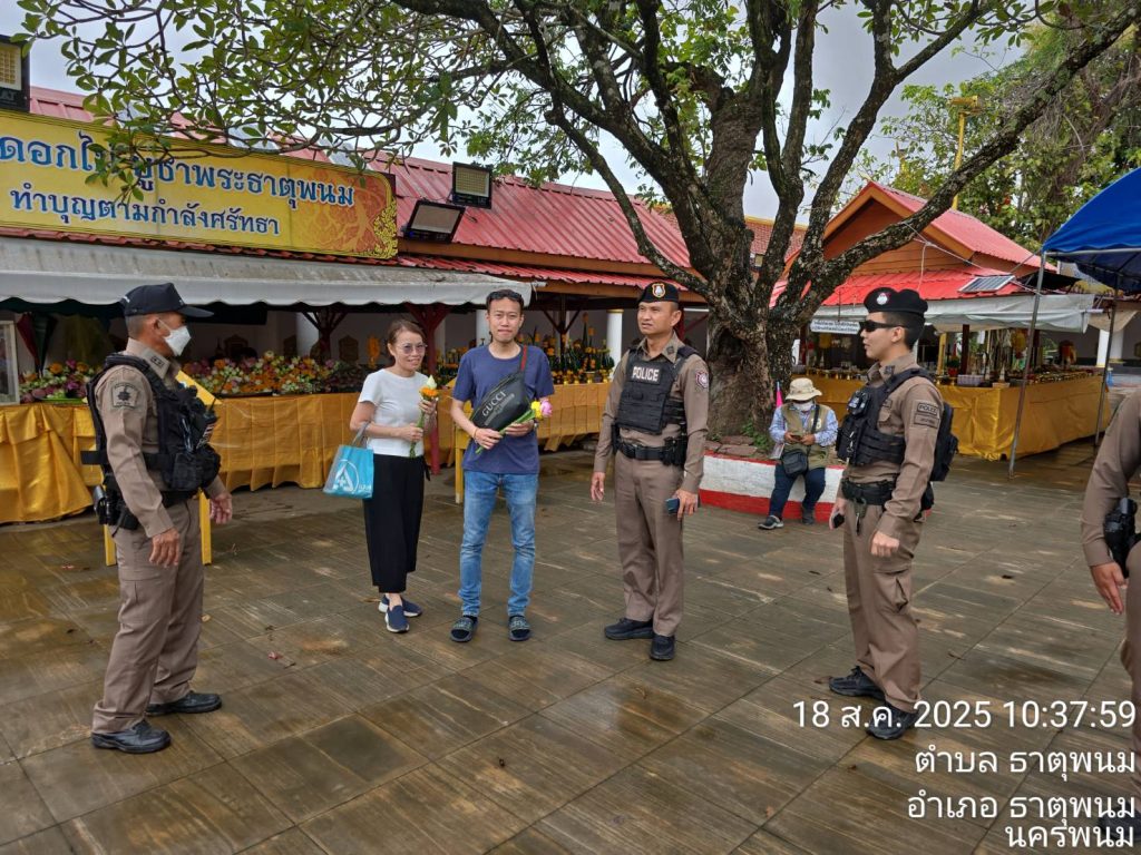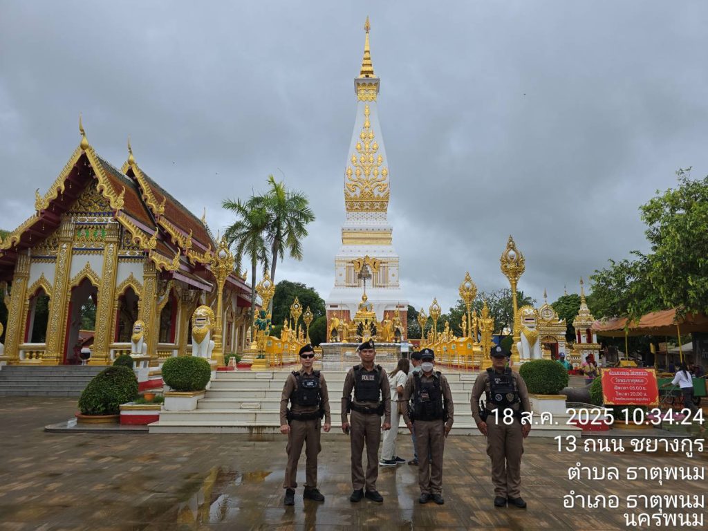 วันนี้ (18 ส.ค. 2568)เวลา 10.00 น.โดยการอำนวยการของ พ.ต.อ.แสวง คนคล่อง ผกก.สภ.ธาตุพนม,พ.ต.ท.ถนอมศักดิ์ ไชยบุรมย์ รอง ผกก.ป.สภ.ธาตุพนม,พ.ต.ท.วิชัย วิทวงค์ สวป.สภ.ธาตุพนม มอบหมายให้ร.ต.อ.ชื่น พันธ์ศิลา รอง สวป.สภ.ธาตุพนม พร้อมสายตรวจรถยนต์ รถจยย. ออกตรวจบริเวณวัดพระธาตุพนม วรมหาวิหาร เพื่อป้องกันเหตุ เหตุการณ์ทั่วไปปกติ
