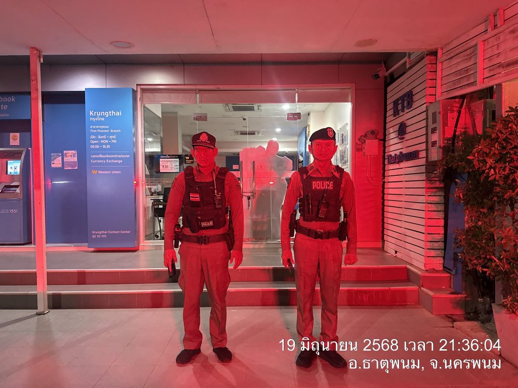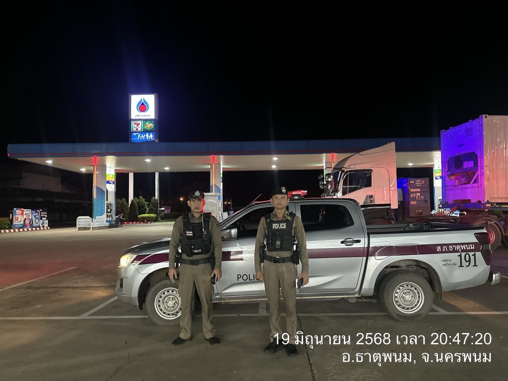 ร.ต.อ.ชื่น พันธ์ศิลา รอง สวป.สภ.ธาตุพนม ปฏิบัติหน้าที่ร้อยเวร 2-0 พร้อมด้วยสายตรวจรถยนต์ รถจักรยายนต์ ได้ออกตรวจจุดเสี่ยง,จุดล่อแหลม ,ธนาคาร ,ร้านทอง และวัดพระธาตุพนม วรมหาวิหาร เพื่อป้องกันเหตุ เหตุการณ์ปกติ