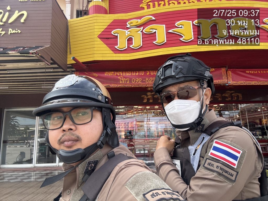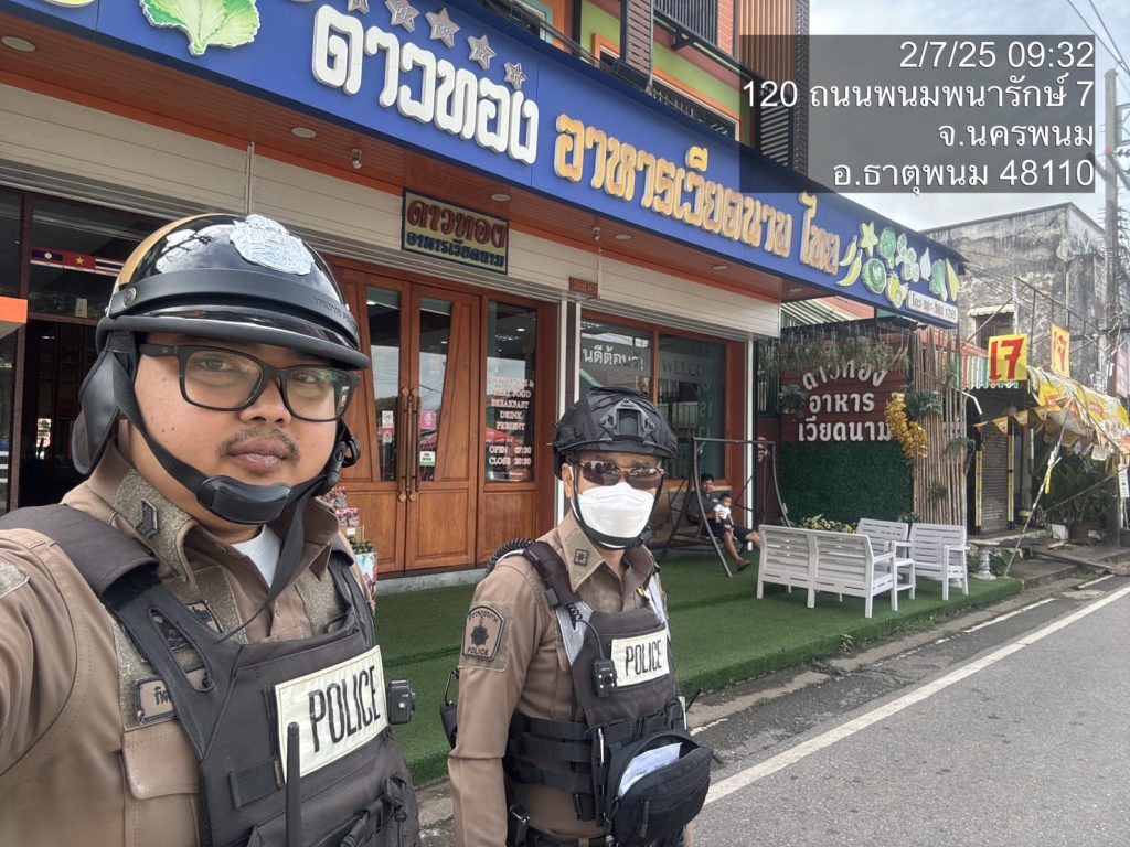พ.ต.ท.ถนอมศักดิ์ ไชยบุรมย์ รอง ผกก.ป.ฯ,พ.ต.ท.วิชัย วิทวงค์ สวป.สภ.ธาตุพนม มอบหมายให้ ร.ต.อ.อัมรินทร์ ประเมินชัย รอง สวป.ฯ, สายตรวจรถยนต์ รถจยย. ออกตรวจพื้นที่รับผิดชอบ ป้องกันเหตุ ตรวจจุดบังคับ / อื่นๆ ร้านสะดวกซื้อ ธนาคาร ร้านทอง ปั๊มน้ำมัน จุดเสี่ยง จุดล่อแหลม เหตุการณ์ทั่วไปปกติ