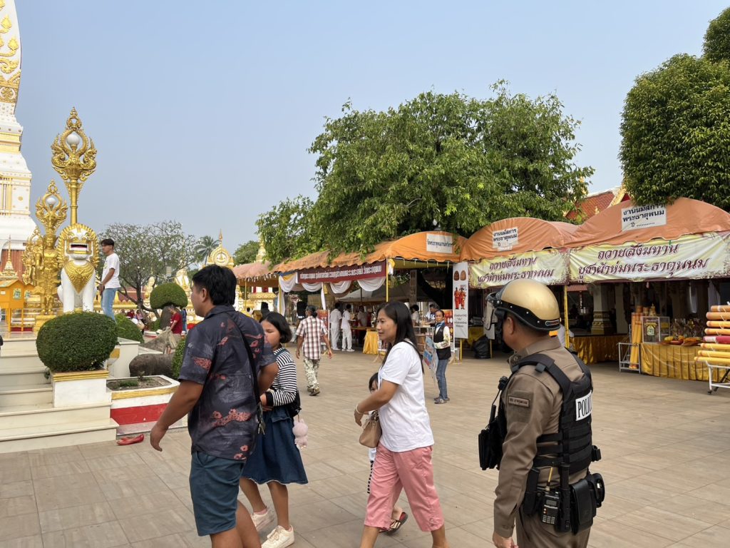 ร.ต.อ.ปรีชา บัวสิงห์ รอง สว.สส.สภ.ธาตุพนม พร้อมสายตรวจรถยนต์ รถจยย.ออกตรวจพื้นที่รับผิดชอบ ป้องกันเหตุ ตรวจจุดบังคับ/อื่นๆ ร้านสะดวกซื้อธนาคาร ร้านทอง ปั๊มน้ำมัน จุดเสี่ยง จุดล่อแหลม และวัดพระธาตุพนม วรมหาวิหาร