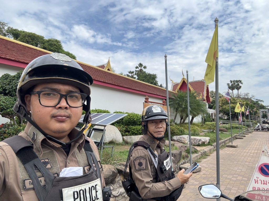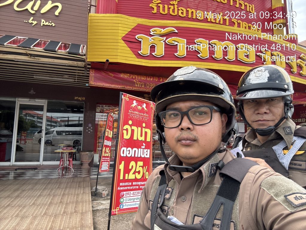 ร.ต.อ.อัมรินทร์ ประเมินชัย รอง สวป.สภ.ธาตุพนม พร้อมสายตรวจรถยนต์ รถจยย. ออกตรวจพื้นที่รับผิดชอบป้องกันเหตุ ตรวจจุดบังคับ/อื่นๆ ร้านสะดวกซื้อธนาคาร ร้านทอง ปั๊มน้ำมัน จุดเสี่ยง จุดล่อแหลม วัดพระธาตุพนม วรมหาวิหาร เหตุการณ์ทั่วไปปกติ