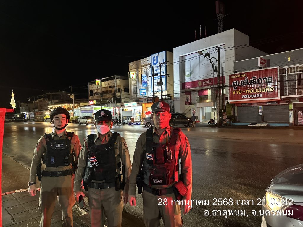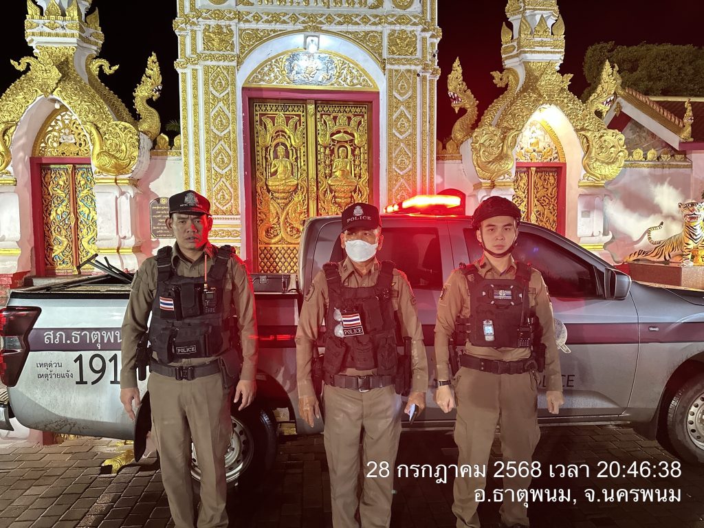 วันนี้ ( 28 ก.ค. 2568)เวลา20.46 น.โดยการอำนวยการของ พ.ต.อ.แสวง คนคล่อง ผกก.สภ.ธาตุพนม,พ.ต.ท.ถนอมศักดิ์ ไชยบุรมย์ รอง ผกก.ป.สภ.ธาตุพนม,พ.ต.ท.วิชัย วิทวงค์ สวป.สภ.ธาตุพนม มอบหมายให้ร.ต.ท.สมหมาย บุระพันธ์ รอง สว.(ป.)สภ.ธาตุพนม พร้อมสายตรวจรถยนต์ รถจยย. ออกตรวจพื้นที่รับผิดชอบ ป้องกันเหตุ ตรวจจุดบังคับ/อื่นๆ ร้านสะดวกซื้อธนาคาร ร้านทอง ปั๊มน้ำมัน จุดเสี่ยง จุดล่อแหลมเหตุการณ์ทั่วไปปกติ