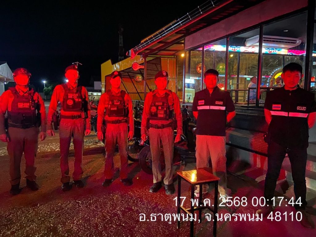 วันนี้(17 พ.ค.2568)เวลา00.20 น. โดยการอำนวยการของ พ.ต.อ.แสวง คนคล่อง ผกก.สภ.ธาตุพนม พ.ต.ท.ถนอมศักดิ์ ไชยบุรมย์ รอง ผกก.ป.สภ.ธาตุพนม,พ.ต.ท.วิชัย วิทวงค์ สวป.สภ.ธาตุพนม มอบหมายให้ ร.ต.อ.ปรีชา บัวสิงห์ รอง สว.สส.สภ.ธาตุพนม พร้อมสายตรวจรถยนต์ สายตรวจรถจักรยานยนต์ ออกตรวจสถานบริการ ได้ประชาสัมพันธ์ให้ปิดร้านตรงเวลา และ บริเวณถนนเรียบริมโขง เพื่อป้องกันการแข่งขันรถในทางฯ เเละป้องกันเหตุทะเลาะวิวาท เหตุการณ์ทั่วไปปกติ