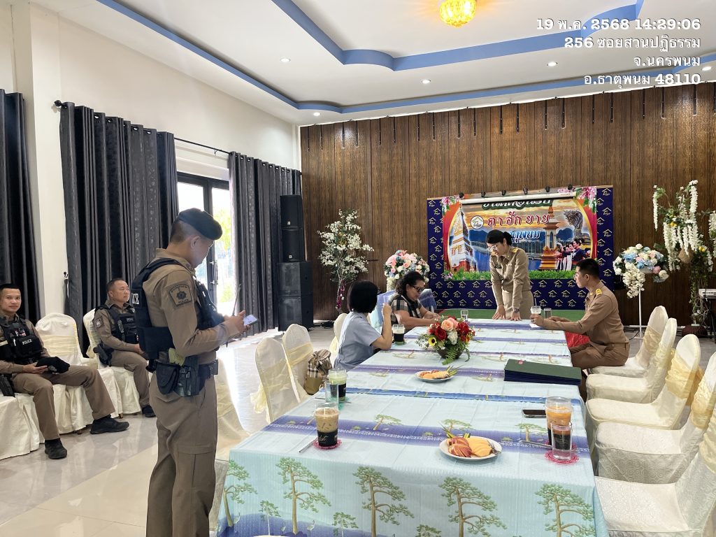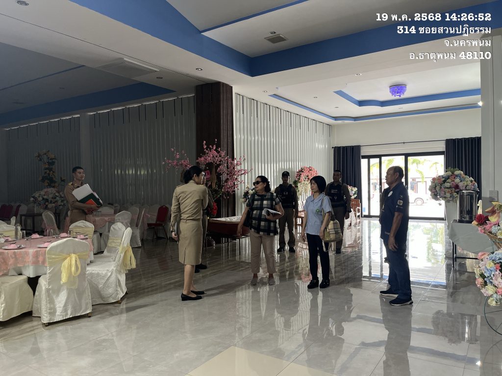 วันนี้ ( 19 พ.ค. 68 )เวลา 14.30 น.ธ.20 ภายใต้การอำนวยการของ พ.ต.อ.แสวง คนคล่อง ผกก.สภ.ธาตุพนม พ.ต.ท.ถนอมศักดิ์ ไชยบุรมย์ รอง ผกก.ป.สภ.ธาตุพนม มอบหมายให้ร.ต.อ.ปรีชา บัวสิงห์ รอง สว.สส.สภ.ธาตุพนม พร้อมชุดสายตรวจ ร่วมกับ อำเภอธาตุพนม เจ้าหน้าที่สาธารณะสุข เจ้าหน้าที่เทศบาล ตรวจโรงเเรมตาฮักยายเพื่อต่อใบอนุญาต ใบประกอบกิจการโรงแรม