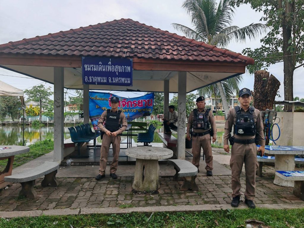 ร.ต.อ.อัมรินทร์ ประเมินชัย รอง สวป. สภ.ธาตุพนมปฏิบัติหน้าที่ร้อยเวร 2-0 พร้อมด้วยสายตรวจรถยนต์ออกตรวจ สวนศรีโคตร ออกประชาสัมพันธ์ ไม่ให้กลุ่มวัยรุ่นสูบหรี่,บุหรี่ไฟฟ้า,ไม่ดื่มน้ำกระท่อมในบริเวณสวนสุขภาพ