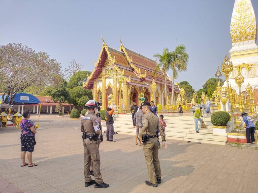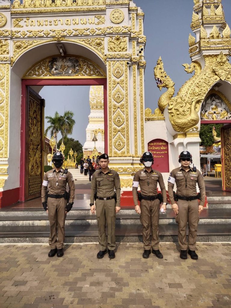 อำนวยความสะดวกการจราจร นักท่องเที่ยวและผู้มาแสวงบุญ บริเวณวัดพระธาตุพนมเหตุการณ์ทั่วไปปกติ