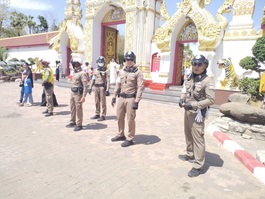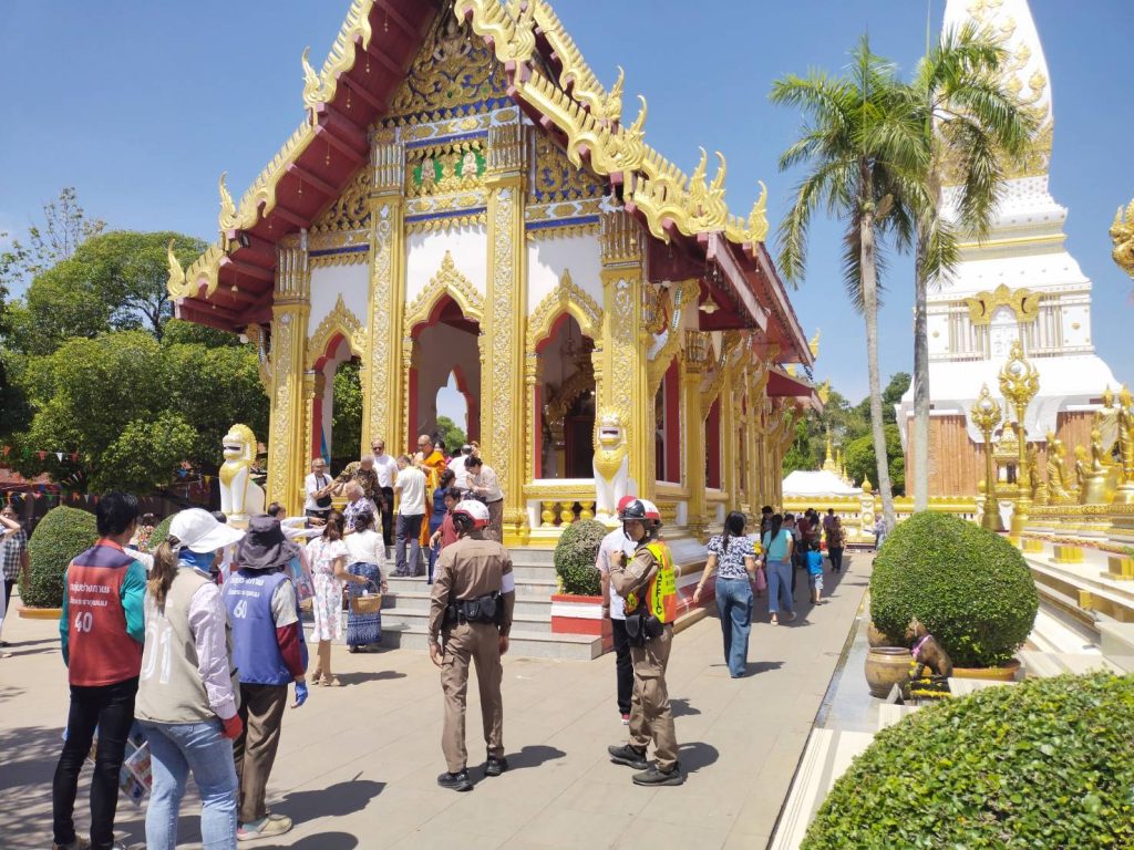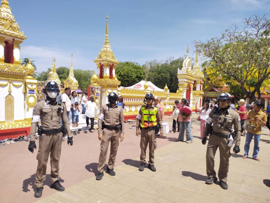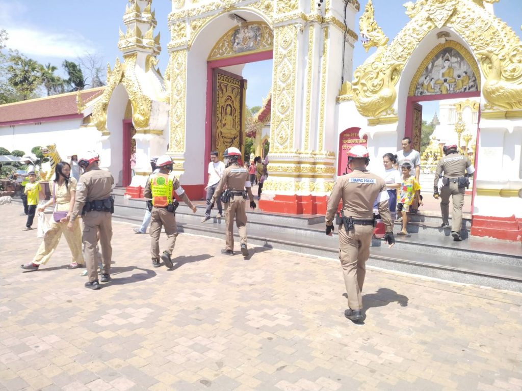 ร.ต.อ.วรชัย กุมลา รอง สว.จร.สภ.ธาตุพนม พร้อมชุดจราจร อำนวยความสะดวกการจราจร นักท่องเที่ยวผู้มาแสวงบุญ และจัดระเบียบพ่อค้าแม่ค้า บริเวณหน้าวัดพระธาตุพนม เหตุการณ์ทั่วไปปกติ