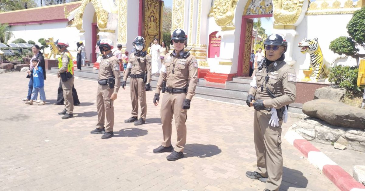 ร.ต.อ.วรชัย กุมลา รอง สว.จร.สภ.ธาตุพนม พร้อมชุดจราจร อำนวยความสะดวกการจราจร นักท่องเที่ยวผู้มาแสวงบุญ และจัดระเบียบพ่อค้าแม่ค้า บริเวณหน้าวัดพระธาตุพนม เหตุการณ์ทั่วไปปกติ
