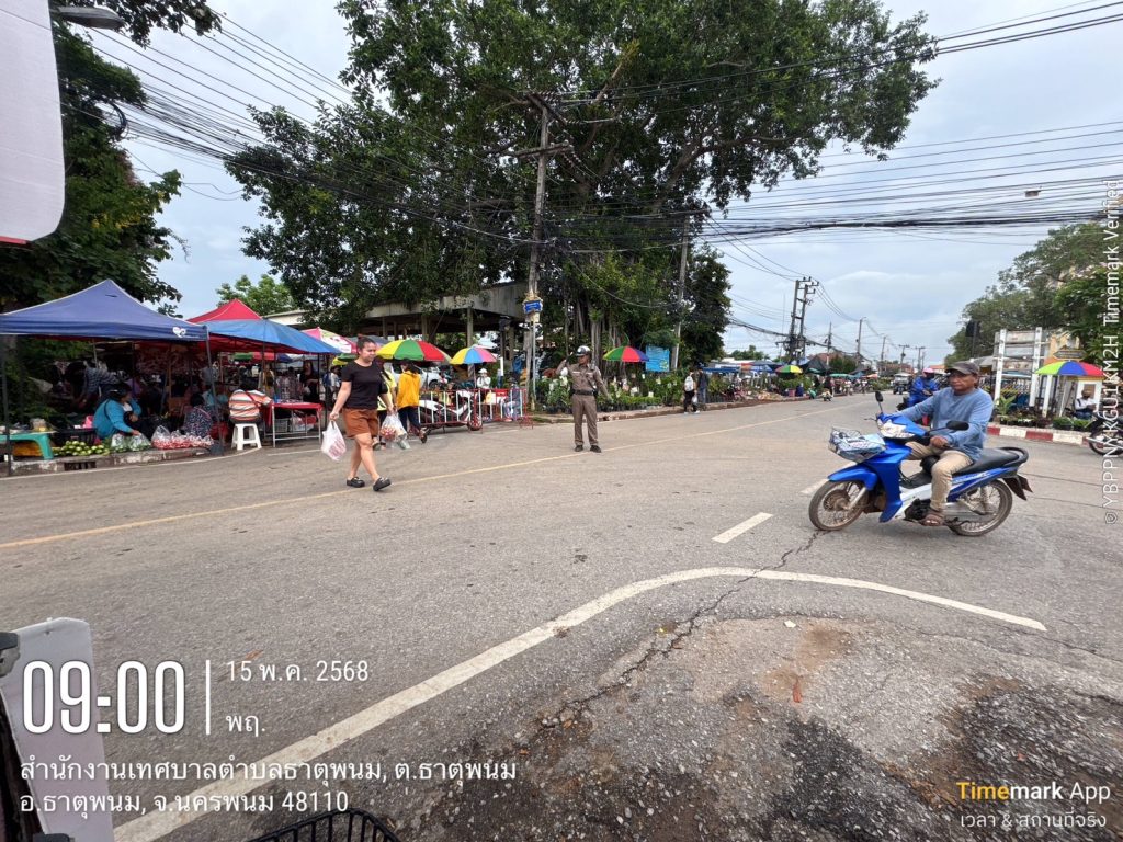 วันที่(15 พ.ค.2568)เวลา09.00 น. โดยการอำนวยการของ พ.ต.อ.แสวง คนคล่อง ผกก.สภ.ธาตุพนม, พ.ต.ท.ถนมศักดิ์ ไชยบุรมย์ รอง ผกก.ป.สภ.ธาตุพนม,พ.ต.ท.วิชัย วิทวงค์ สวป.สภ.ธาตุพนม พร้อมชุอจราจร อำนวยความสะดวกบริเวณสี่แยกตลาดจุดผ่อนปรนตลาดไทย -ลาว เหตุการณ์ทั่วไปแกติ