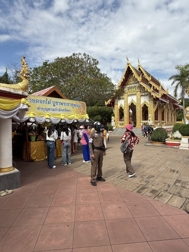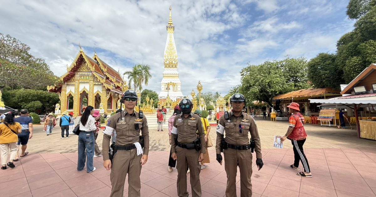 พ.ต.ท.ถนอมศักดิ์ ไชยบุรมย์ รอง ผกก.ป.สภ.ธาตุพนม,พ.ต.ท.วิชัย วิทวงค์ สวป.สภ.ธาตุพนม มอบหมายให้ ร.ต.ท.นภ ระบาเลิศ รอง สว.(จร.)สภ.ธาตุพนม พร้อมชุดจราจร อำนวยความสะดวกการจราจรหน้าวัด เหตุการณ์ทั่วไปปกติ