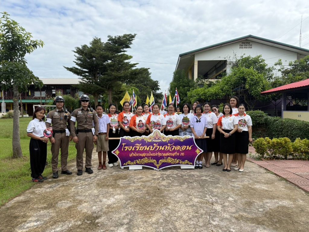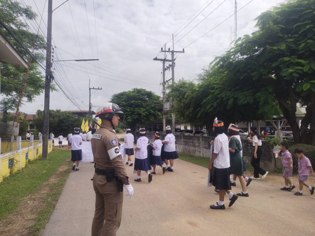 พ.ต.ท.ถนอมศักดิ์ ไชยบุรมย์ รอง ผกก.สภ.ธาตุพนม ,พ.ต.ท.วิชัย วิทวงค์ สวป.สภ.ธาตพนม มอบหมายให้ ขุดตราจร อำนวยความสะดวกการจราจรขบวนเดินรณรงค์วันต่อต้านยาเสพติดของโรงเรียนบ้านหัวดอน