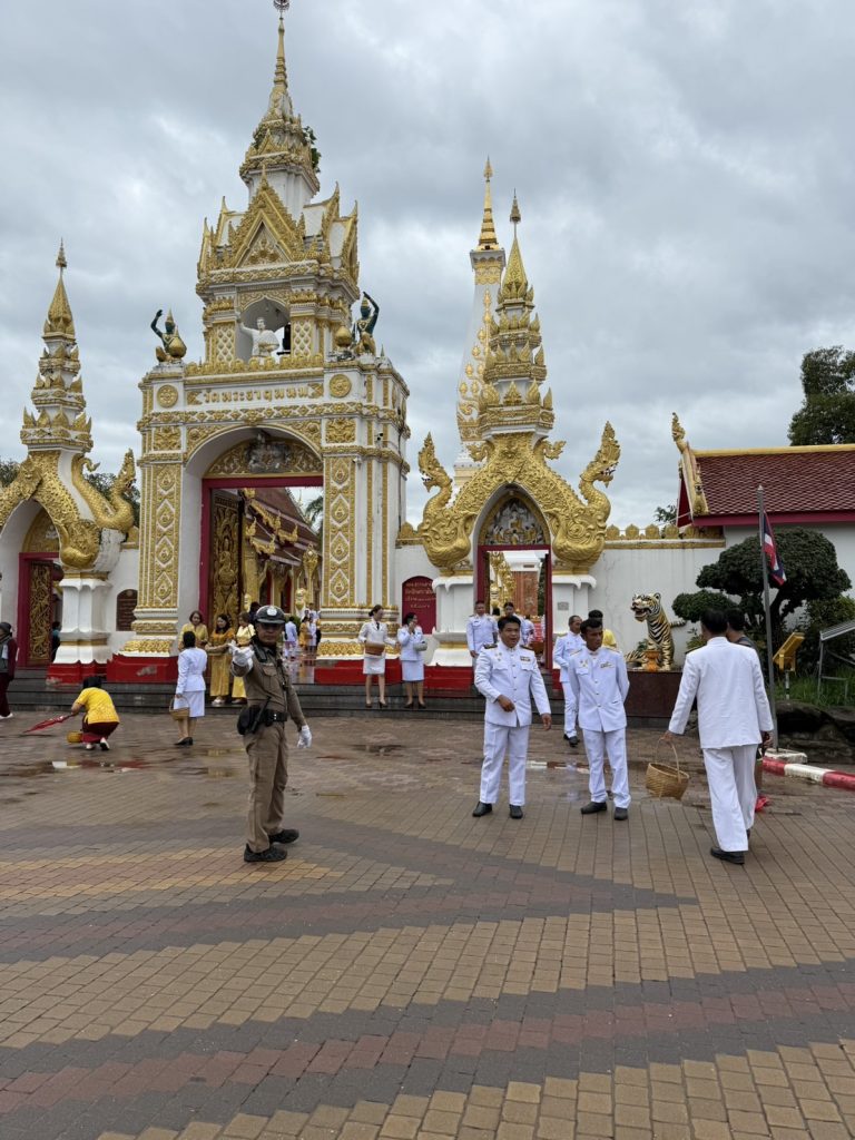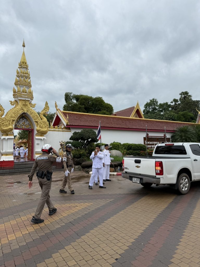 วันนี้28 ก.ค.2568 เวลา 07.00 น. โดยการอำนวยการของ พ.ต.อ.แสวง คนคล่อง ผกก.สภ.ธาตุพนม พ.ต.ท.ถนอมศักดิ์ ไชยบุรมย์ รอง ผกก.ป.ฯ,พ.ต.ท.วิชัย วิทวงค์ สวป.สภ.ธาตุพนม มอบหมายให้ ชุดจราจรอำนวยความสะดวกด้านการจราจรบริเวณหน้าวัดพระธาตุพนม แก่นักท่องเที่ยว และส่วนราขการ ร่วมพิธี ตักบาตรถวายพระราชกุศล ณ วัดพระธาตุพนม วรมหาวิหาร