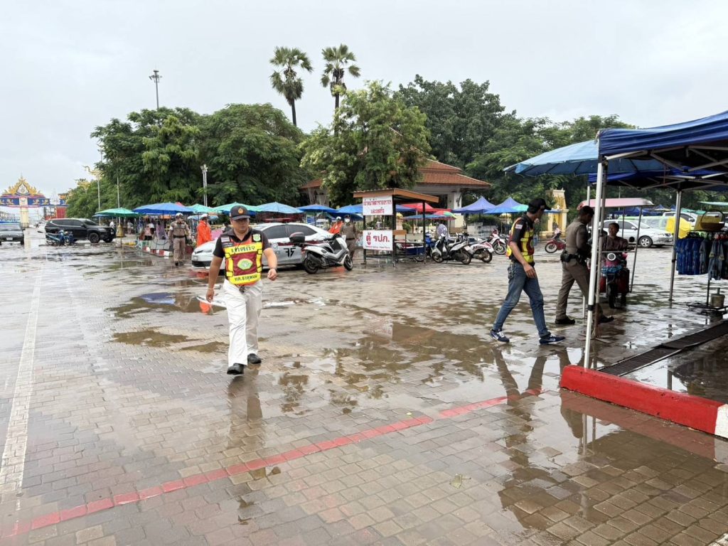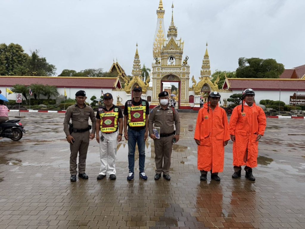 พ.ต.ท.ถนอมศักดิ์ ไชยบุรมย์ รอง ผกก.ป.ฯ,พ.ต.ท.วิชัย วิทวงค์ สวป.สภ.ธาตุพนม มอบหมายให้ชุดจราจรอำนวยความสะดวกด้านการจราจร ดูแลความปลอดภัยนักท่องเที่ยว กวดขันระเบียบพ่อค้าแม่ค้า หน้าวัดพระธาตุพนม วรมหาวิหาร