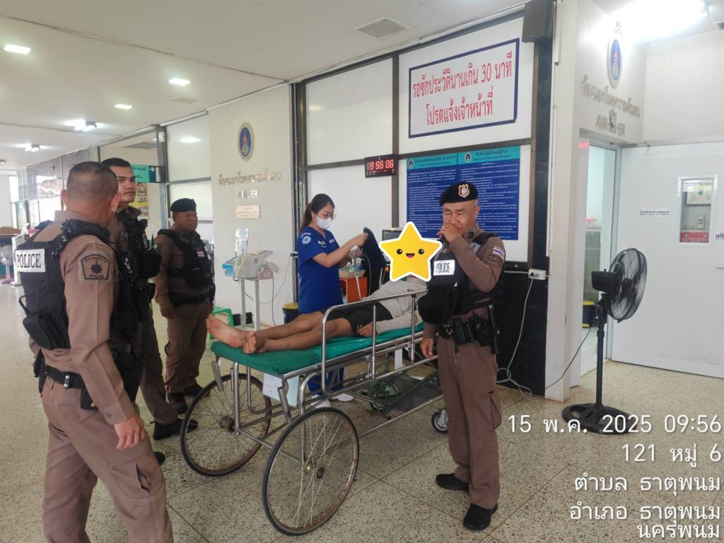 ร.ต.อ.อัมรินทร์ ประเมินชัย รอง สวป.ฯ พร้มสายตรวจรถยนต์ จักรยานยนต์ สายตรวจตำบลน้ำก่ำตรวจสอบเหตุอาละวาด ได้นำตัวส่งโรงพยาบาลเพื่อทำการรักษาต่อไป