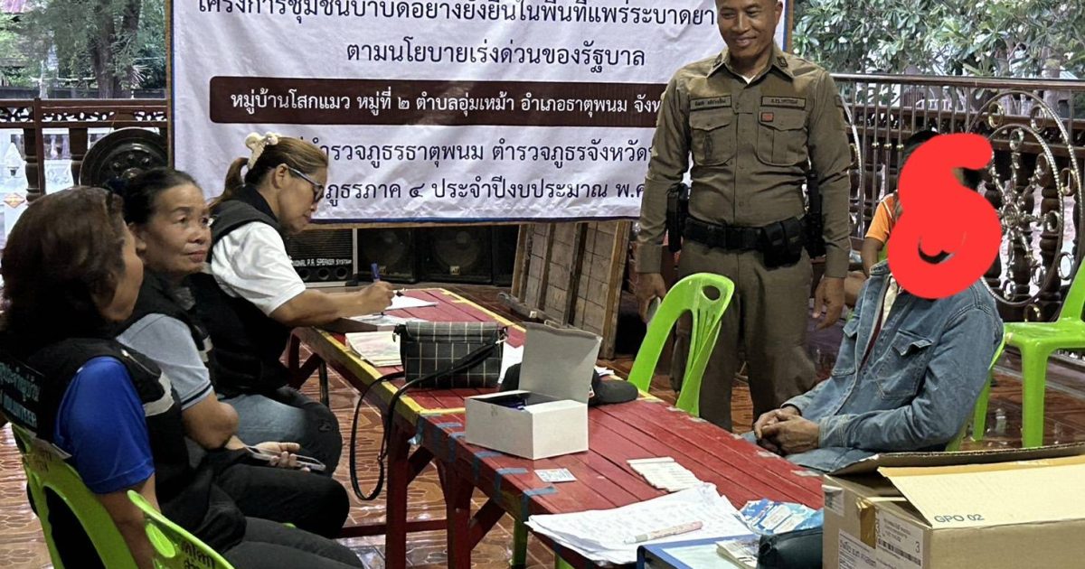 ร่วมกับฝ่ายปกครอง,สาธารณสุขออกพบปะเยี่ยมเยียนประชาชน และตรวจปัสสาวะกลุ่มเป้าหมายตามโครงการชุมชนยั่งยืนฯบ้านโสกแมว ม. 2 ต.อุ่มเหม้าอ.ธาตุพนม จ.นครพนม