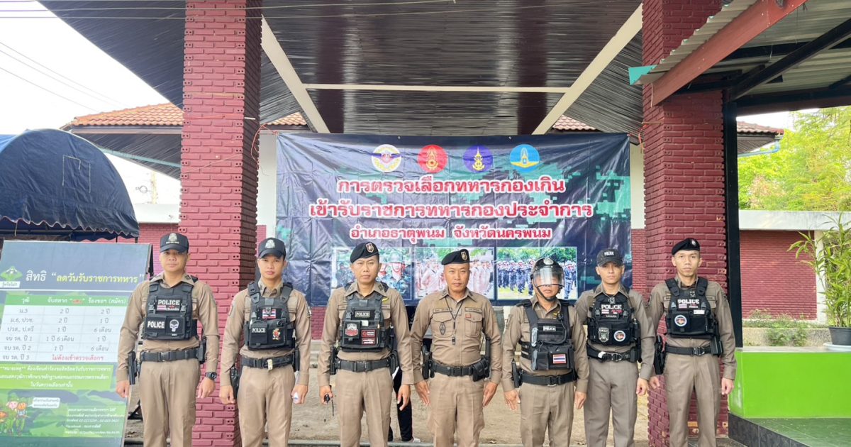 พ.ต.ต.อัมพร เสนาะเสียง สวป.(ชส)สภ.ธาตุพนม ร้อยเวร 20 พร้อมสายตรวจรถยนต์ รถจักรยานยนต์ เขต.1 และ เขต.2 ออกตรวจบริเวณหอประชุมอำเภอธาตุพนม การตรวจเลือกทหารกองเกิน เข้ารับราชการทหารกองประจำการ 2568 เหตุการณ์ทั่วไปปกติ