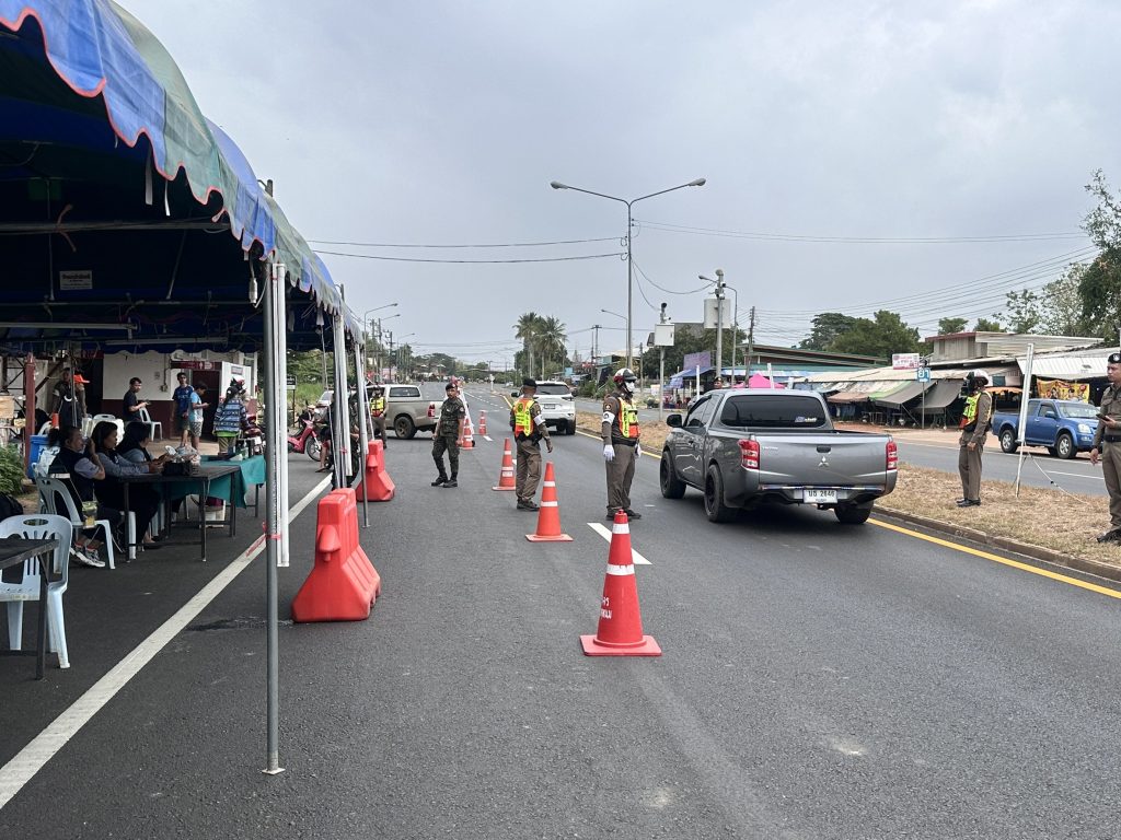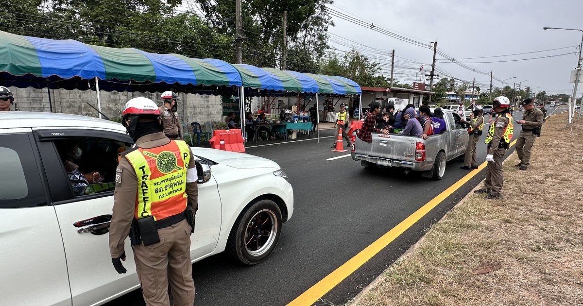 ตั้งจุดตรวจกวดขันวินัยจราจร บริเวณหน้าตู้ยามสายตรวจตำบลฝั่งแดง ต.ฝั่งแดง อ.ธาตุพนม จ.นครพนม