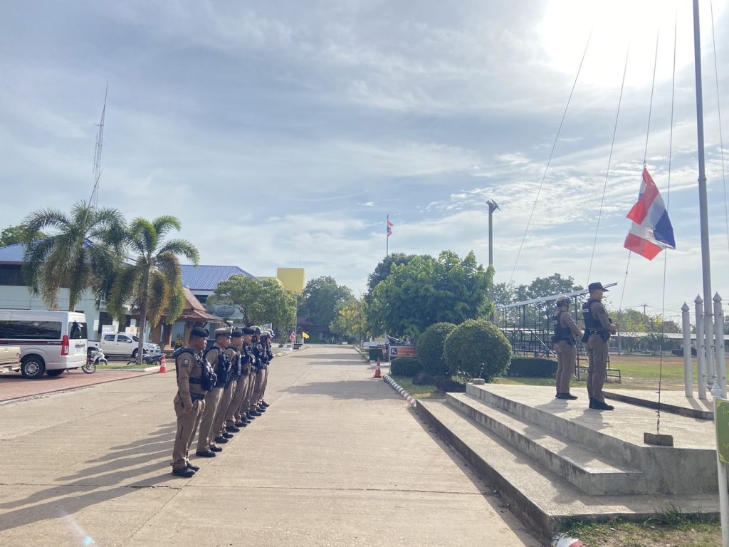 ได้มอบหมายให้ พ.ต.ท.ถนอมศักดิ์ ไชยบุรมย์ รอง ผกก.ป.ฯ ,พ.ต.ท.วิชัย วิทวงศ์ สวป.ฯ พร้อมด้วย ร.ต.อ.อัมรินทร์ ประเมินชัย รอง สว.ป.ฯ (ผลัดใหม่) ร.ต.อ.ชื่น พันธ์ศิลา รอง สว.ป.ฯ (ผลัดเก่า) ได้เรียกแถวสายตรวจรถยนต์, จยย. มาเพื่อร่วมกันเคารพธงชาติ, สวดมนต์ไหว้พระ, กล่าวบทปลงใจ, คำปฏิญานตน, อุดมคติตำรวจ, วิสัยทัศน์ และ พร้อมฟังชี้แจงข้อราชการแก่สายตรวจก่อนออก ว.4 และได้กำชับสายตรวจทุกนาย