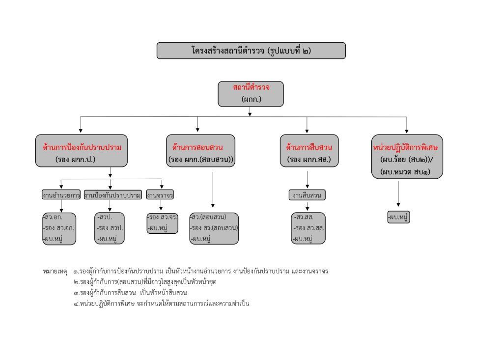 มีหน้าที่เกี่ยวกับการอำนวยการ การวางแผน การตรวจสอบติดตามและประเมินผลงานที่เกี่ยวกับนโยบาย ยุทธศาสตร์ และแผนงานของสถานีตำรวจ งานการบริหารบุคลากร งานจเรตำรวจงานกิจการพิเศษ งานความมั่นคง การศึกษา การฝึกอบรม งานวิชาการ สวัสดิการ การพัฒนา การบริหารจัดการ งบประมาณ การเงิน การพัสดุ การพลาธิการและสรรพาวุธ การส่งกำลังบำรุง รวมทั้งลักษณะงานอื่น ๆ ที่เกี่ยวข้องหรือเป็นส่วนประกอบของงานดังกล่าว เพื่อส่งเสริมหรือสนับสนุนการปฏิบัติงานของสถานีตำรวจ