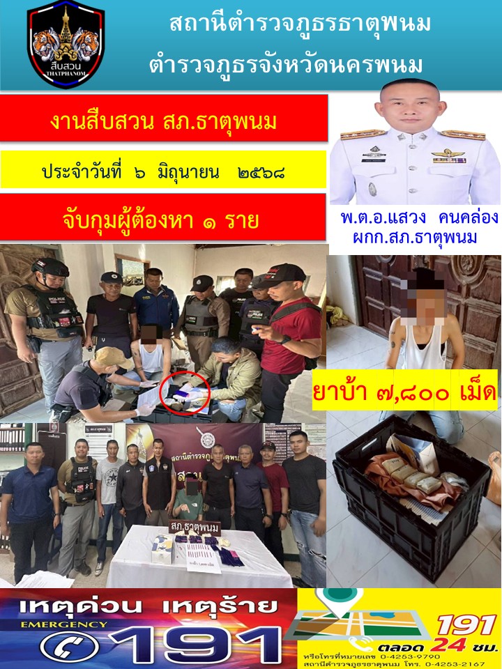 วันนี้( 24 มิ.ย.2568)เวลา10.00 น พ.ต.อ.แสวง คนคล่อง ผกก.สภ.ธาตุพนมพ.ต.ท.ไพฑูลย์ ศิริพยัคฆ์ รอง ผกก.ส
