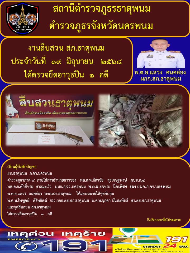 วันที่ 3 กรกฎาคม 2568 เวลาประมาณ 08.24 น. โดยการอำนวยการ ของพ.ต.อ.แสวง คนคล่อง ผกก.สภ.ธาตุพนมพ.ต.ท.ว